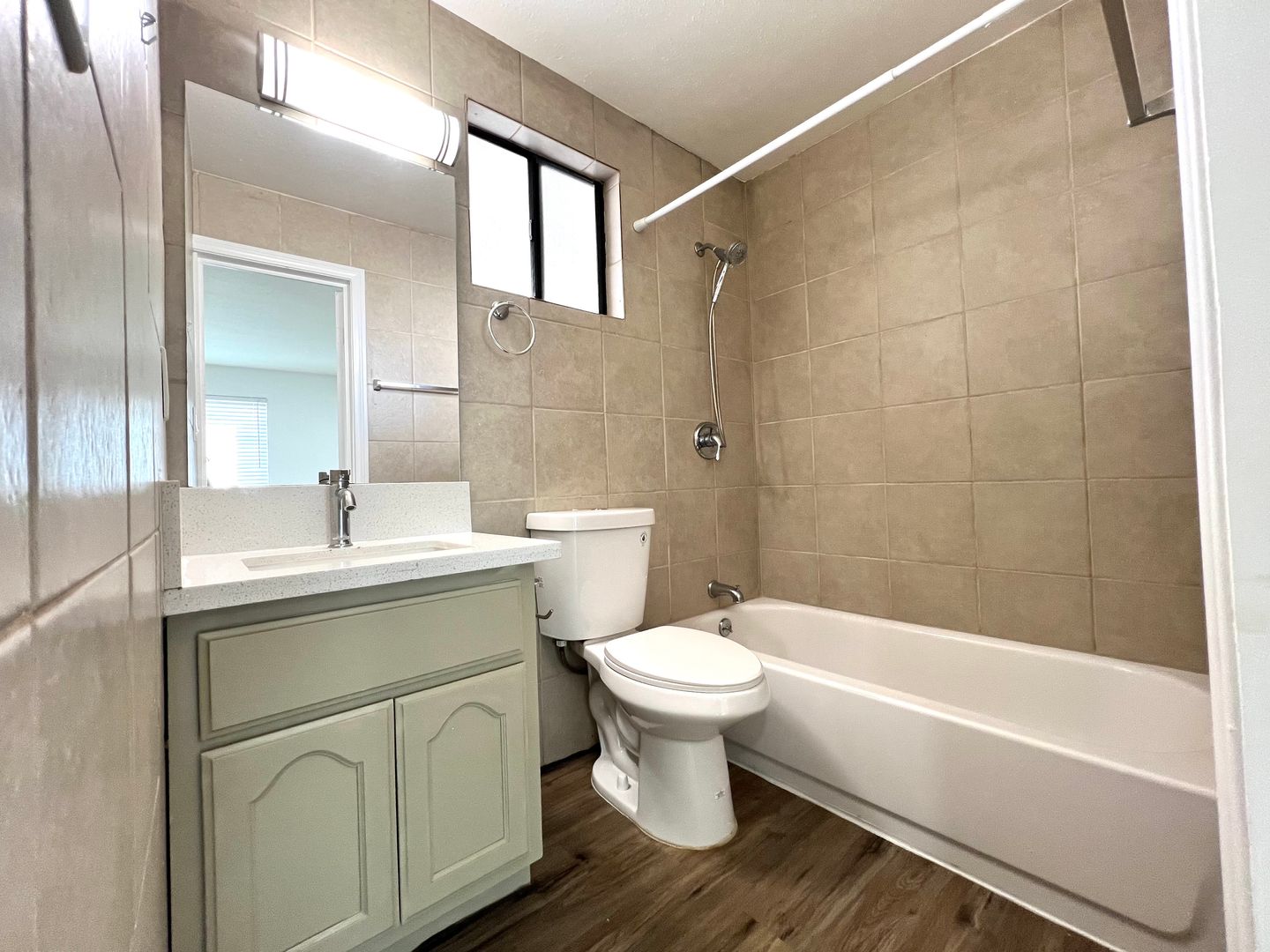 This beautifully remodeled unit features quartz countertops and stainless steel appliances, perfect for those who love to cook and entertain.